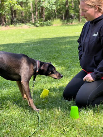 Auch diese Arbeit bietet nicht nur Beschäftigung, sondern unterstützt den Hundeführer bei der Erziehung, wie z.B. Impulskontrolle des Hundes.