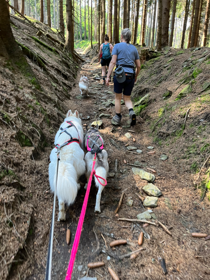 Ob klein oder groß! Für alle Hunderassen. Das gemeinsame Wandern in der Natur soll das Hund-Mensch-Team zusammenschweißen. Unterstützt vom Hund fällt es dem Zweibeiner auch leichter, längere Strecken zu meistern und es gibt einem ein gutes Gefühl, was geschafft zu haben. Zugausrüstung wird empfohlen (kann bei uns geliehen werden)!